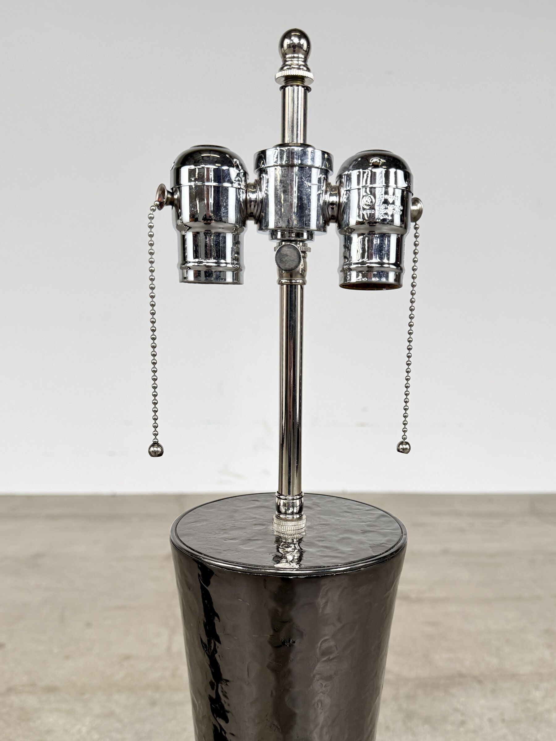 Double cluster fixture with pull chains, on/off switch on cord Requires two (2) medium base bulbs, 60 Watt max each