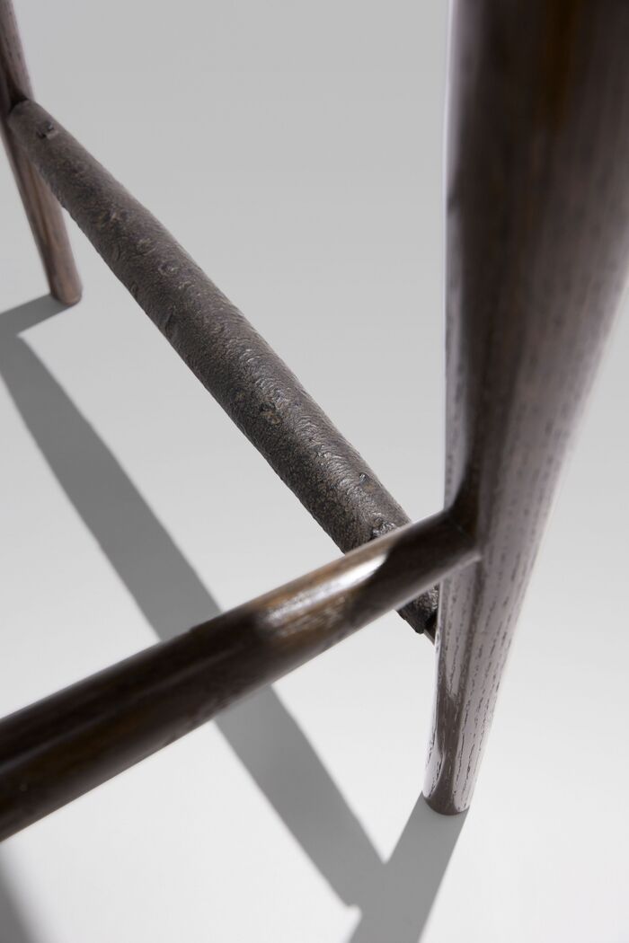 Oak Stains: Dark Slate Grey, Rush Back: Dark Slate Grey, Foot Rest Cover: Iron Finishes, Desert Black, with ARMLESS BARSTOOL