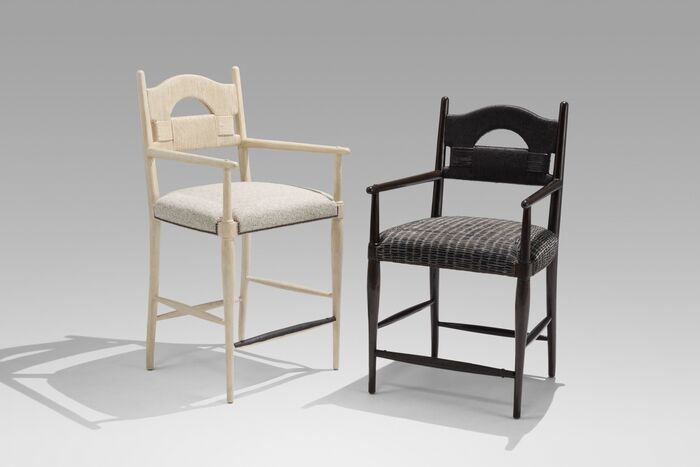 Walnut Stains: Sumatra, Rush Back: Sumatra, Foot Rest Cover: Iron Finishes, Desert Black, with Barstool with Arms