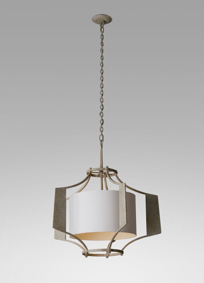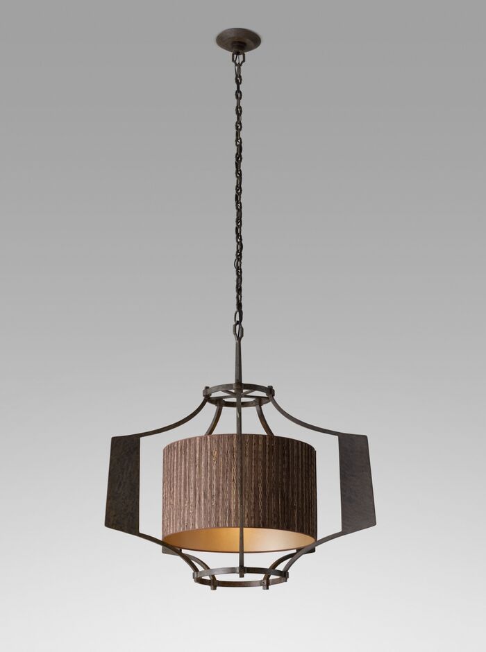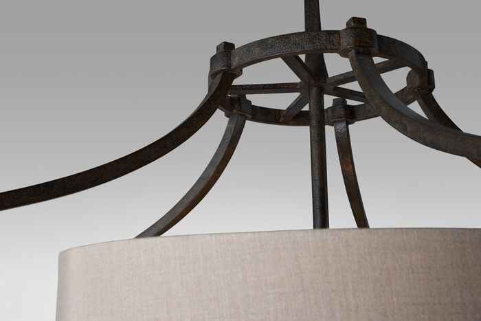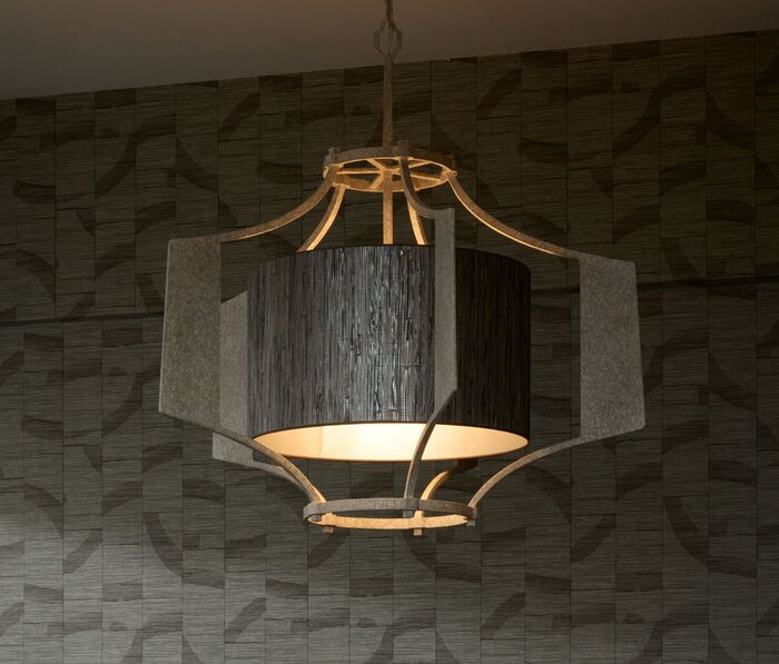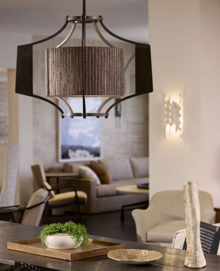 Iron Finishes: Desert Black, Moonlight Woven shade with satin silver interliner