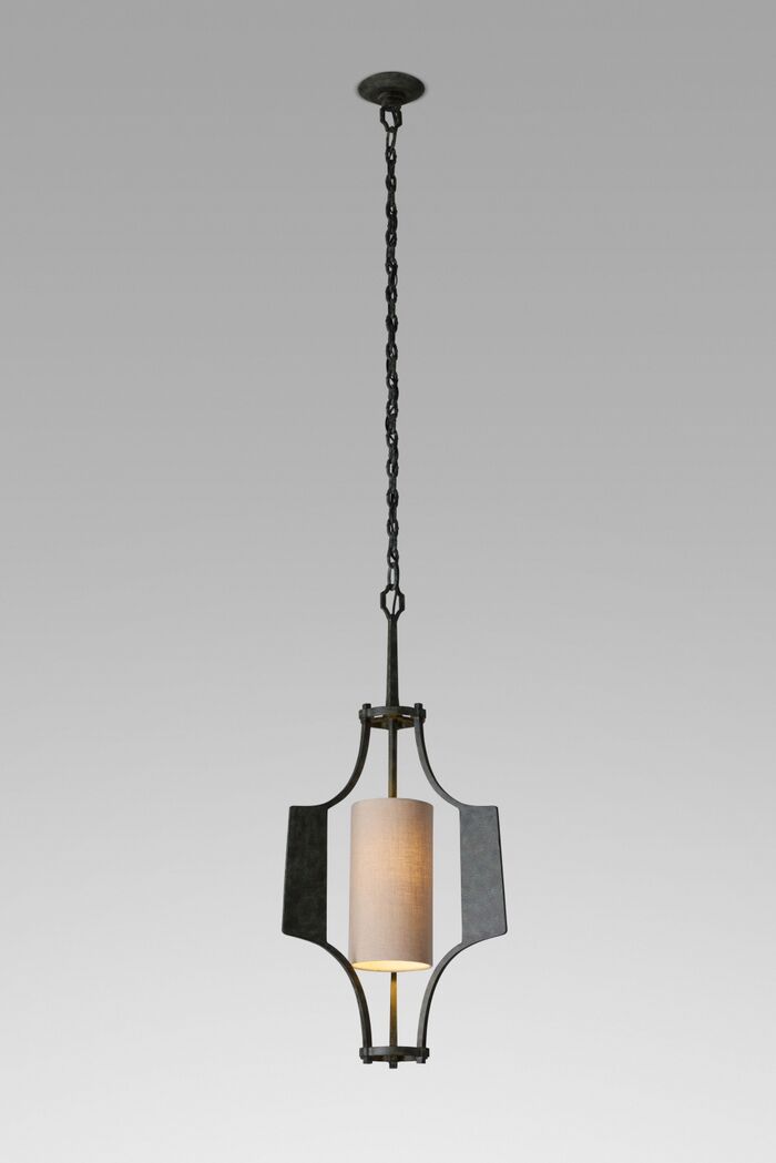 Iron Finishes: Bronze verde, Shade: Natural Belgian Linen with vanilla interliner