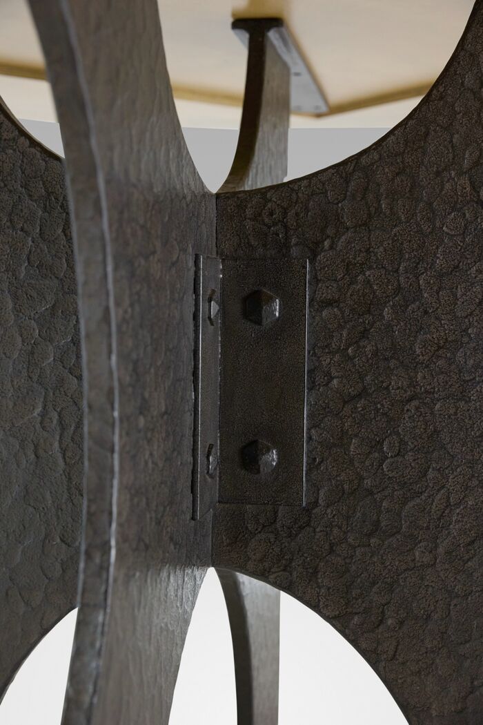 Hand-forged iron base with hammered texture