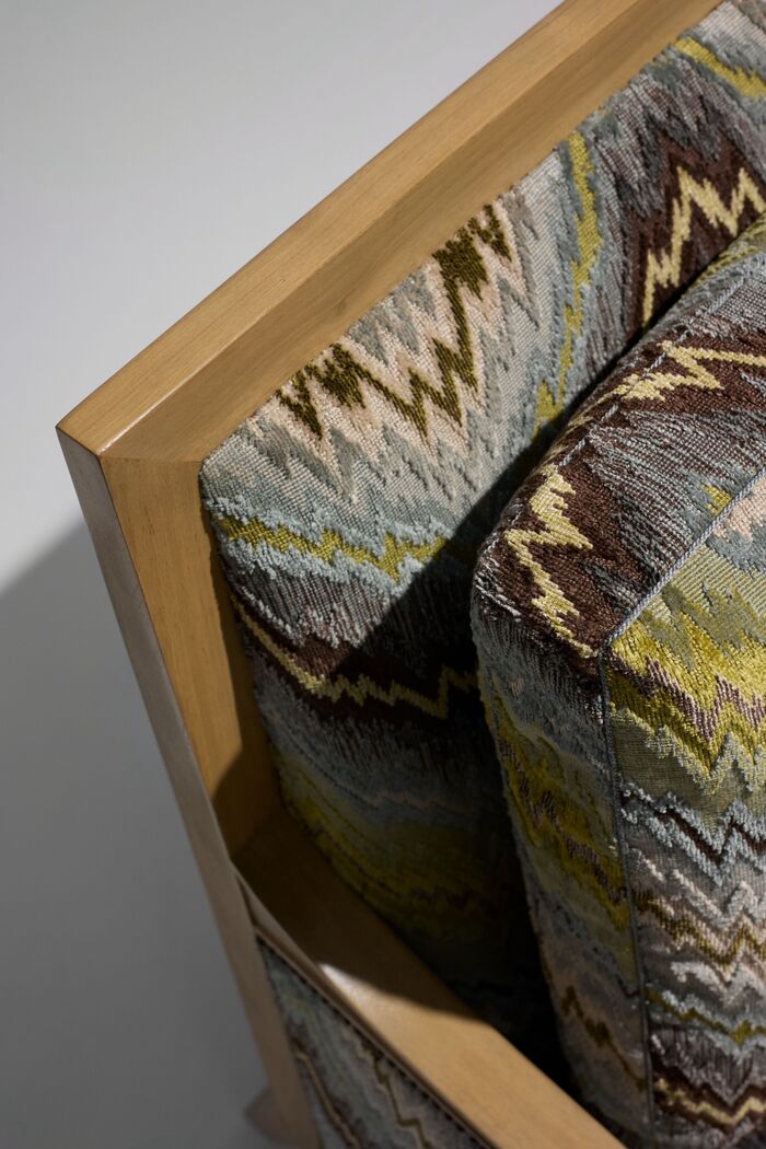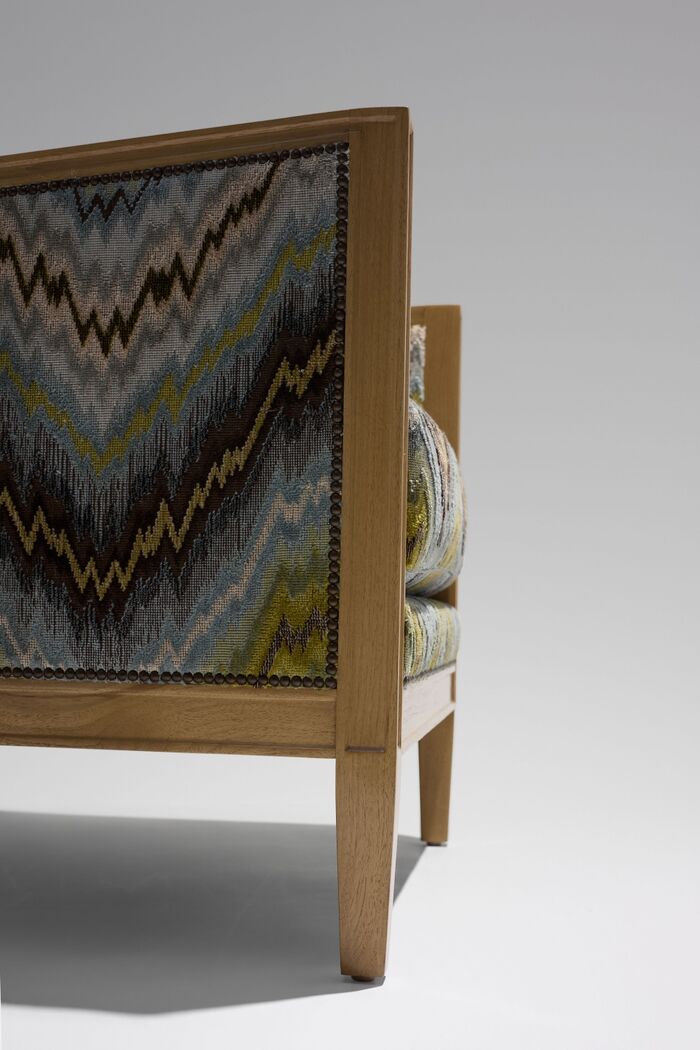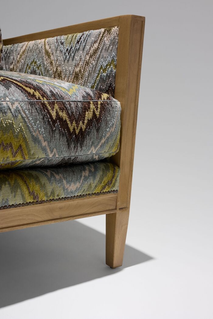Upholstered panels on outside arms and outside back