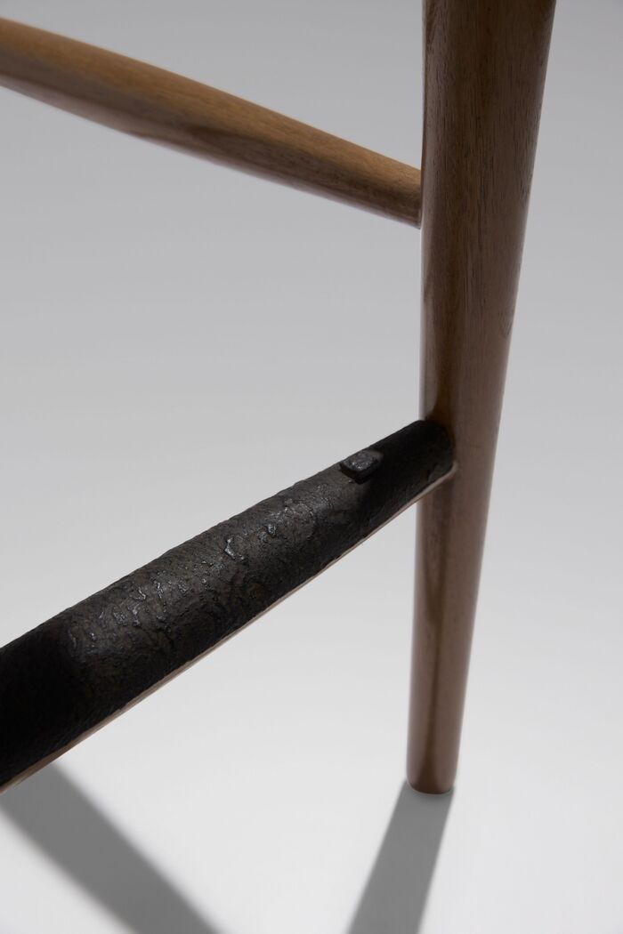 Walnut Stains: Dry Aged, Rush Back: Dry Aged, Foot Rest Cover: Iron Finishes, Desert Black, with Armless Counter Stool