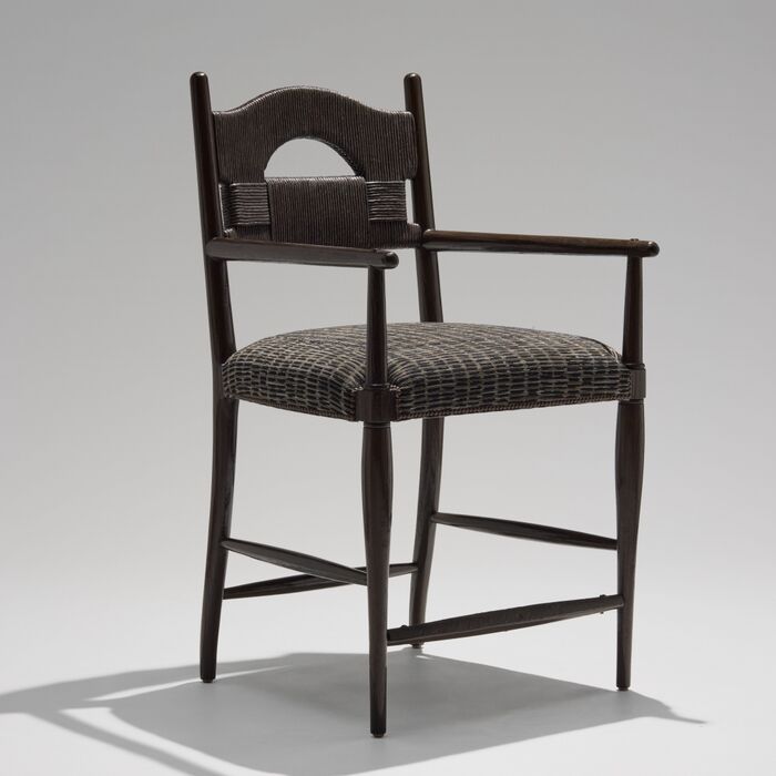 Walnut Stains: Sumatra, Rush Back: Sumatra, Foot Rest Cover: Iron Finishes, Desert Black, with Barstool with Arms