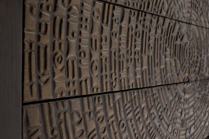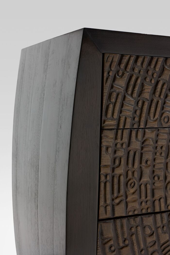 Cabinet: Walnut Stains, Sumatra; DRAWERS: Walnut Stains, Slate grey; DRAW DETAIL: KAME CARVING