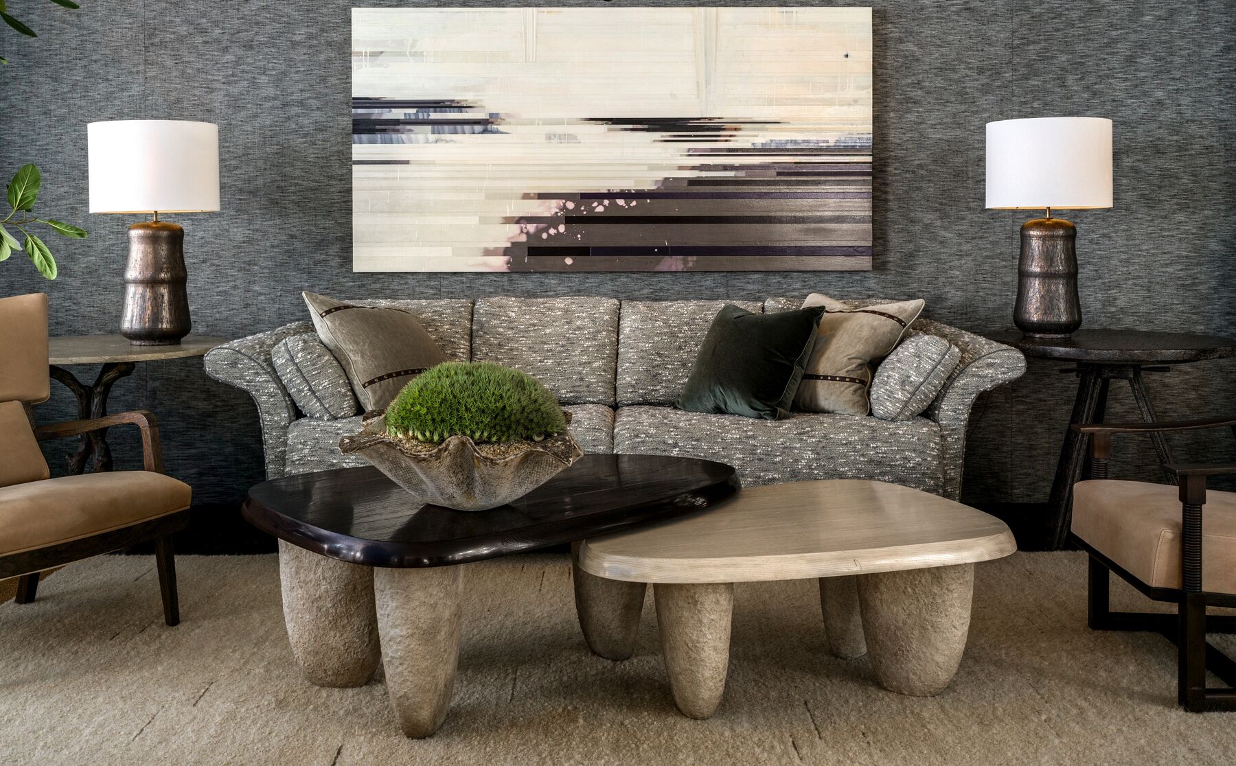 Three hand-cast composite stone bases