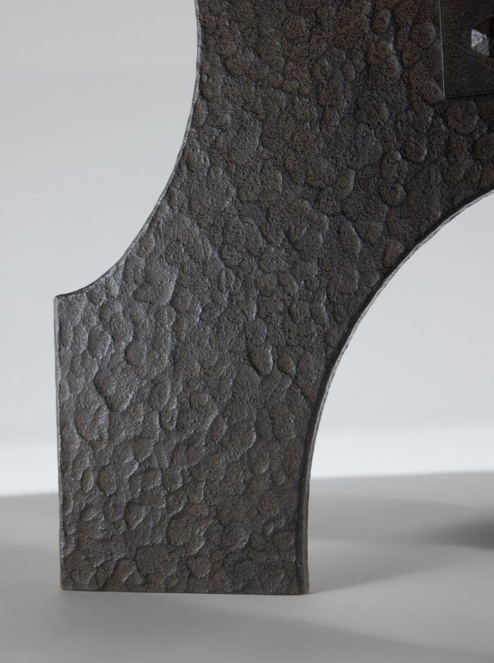 Hand-forged iron base with hammered texture