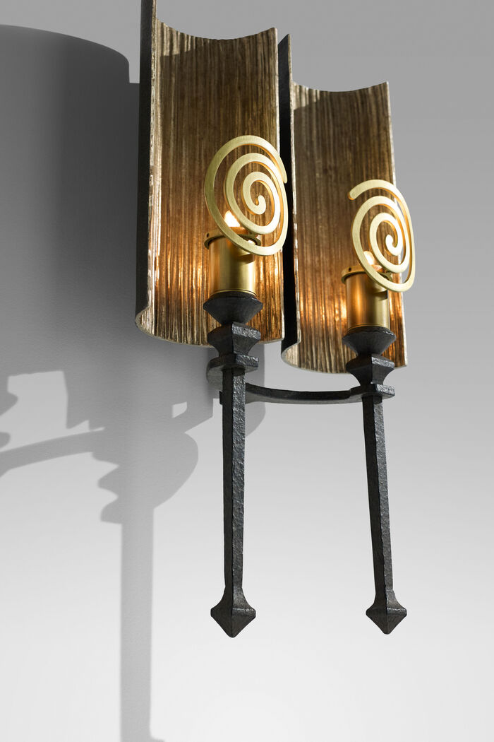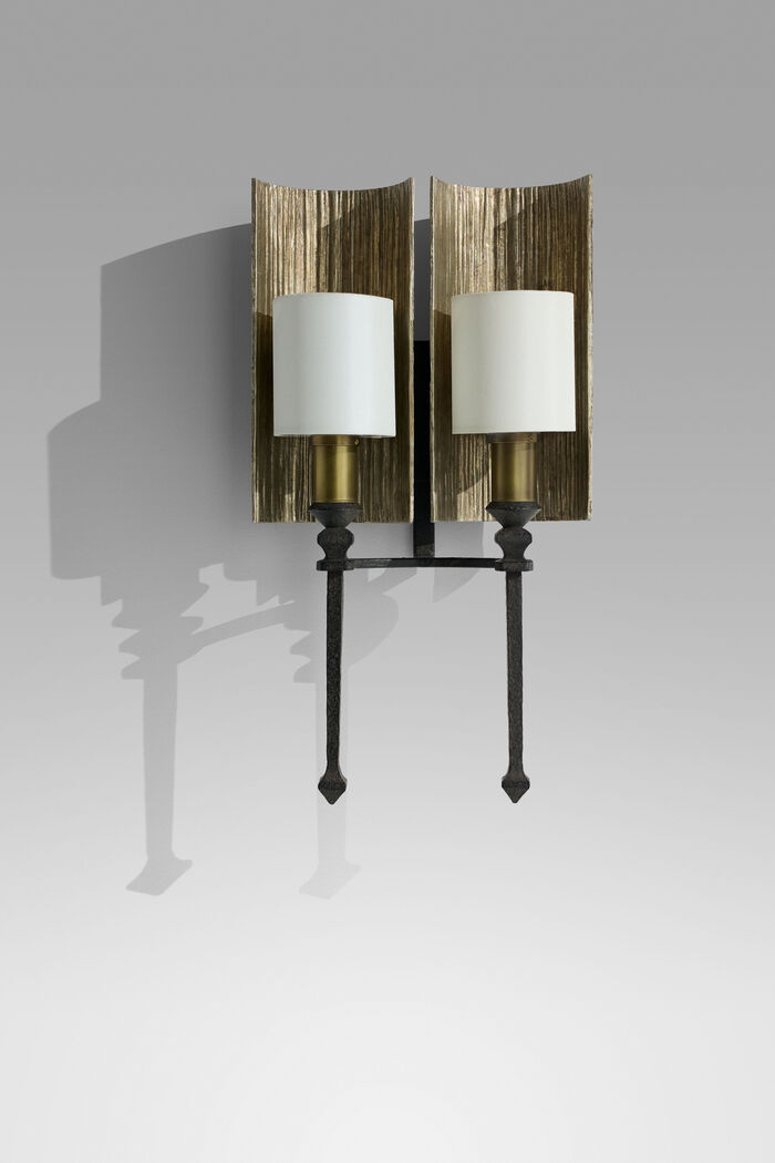 TALL BACKPLATE Iron Finishes: Desert Black, Architectural Bronze Finishes: Brushed, BACK PANEL: Gilded Iron Finishes, Worn Aged Borghese